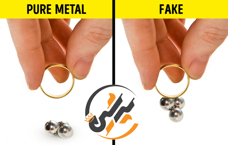 توسط يک تکه يخ ،زيورآلات اصل را ميتوانيد شناسايي کنيد. توجه داشته باشيد که فلزاتي همچون طلا و نقره و پلاتين از جمله موادي هستند که از ويژگي رسانش گرمايي بسيار قوي نسبت به ساير فلزات برخوردار ميباشند. اگر شما يک تکه يخ به همراه خود داشته باشيد و قطعه طلا و نقره را روي آن قرار دهيد متوجه خواهيد شد که يخ با سرعت بالايي ذوب خواهد شد، به طوري که ممکن است حتي به نظر بيايد که بسيار داغ و با حرارت بالايي روي آن قرار داده ايد.